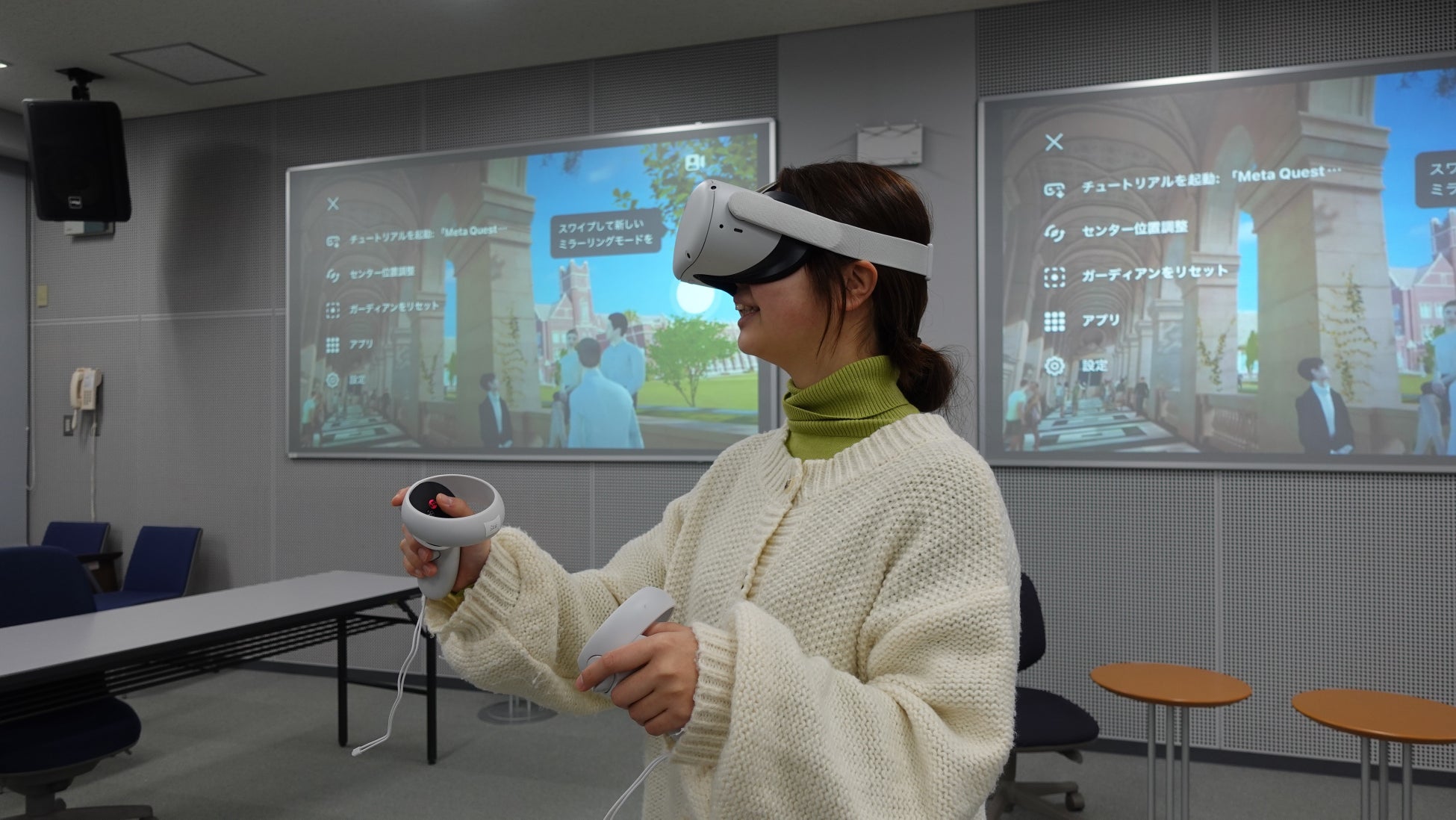 初めてVRゴーグルを使ったという国際関係コース1年生の石堂りんごさんは「とても楽しく、その場所にいるかのように感じた」と初めてのVR体験にびっくりしました。