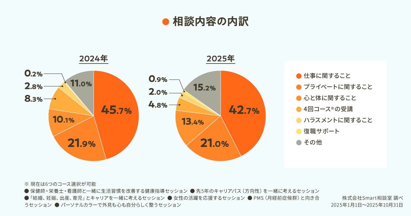 株式会社Smart相談室(本社:東京都港区、代表取締役・CEO:藤田 康男、以下「当社」)は、提供する法人向けオンライン対人支援プラットフォームにおける、2025年の相談実績に関する分析レポートを発表しました。