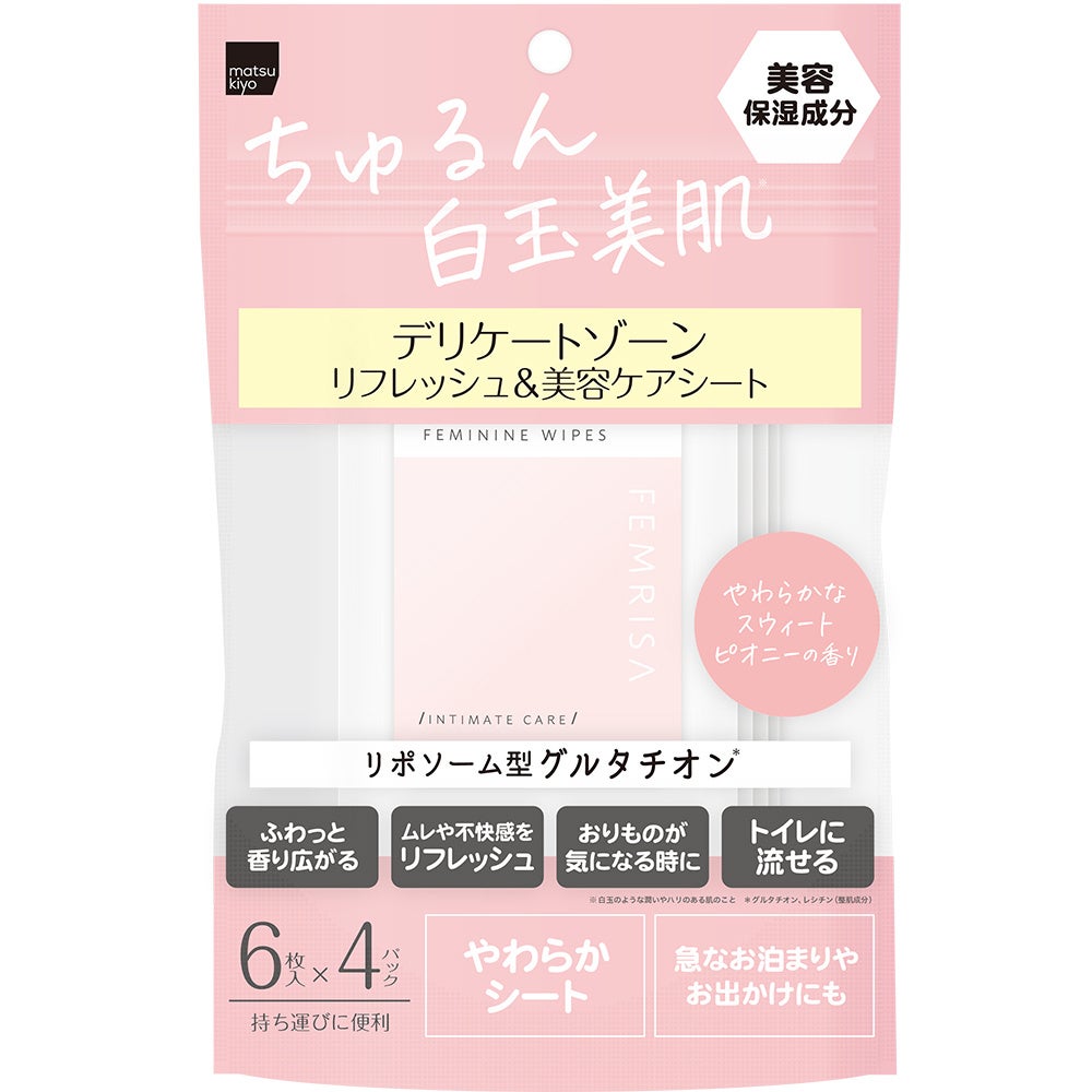 「matsukiyo FEMRISA(フェムリサ)」は、くすみ※1ケア・保湿ケア・美肌ケアなどご自身のデリケートゾーンにおけるお悩みにあわせて、組み合わせてご使用いただけます。外出中など気になった時にすぐご使用できてトイレに流せる、小分けのエニーシートもあわせてご活用ください。