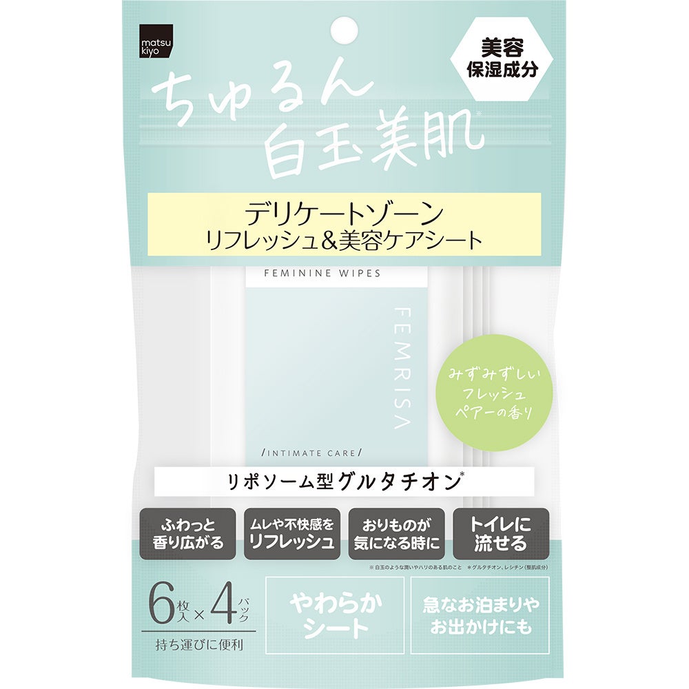6つの無添加※2・低刺激処方であるほか、各商品には話題の「リポソーム型グルタチオン※3」を配合しており、白玉のように清潔感のあるもち肌※4を目指すことができます。そのほか、商品ごとにくすみ※1ケアの保湿成分ビタミンC※5・ヒアルロン酸※6・セラミド※7、ニオイケア※8カキ果実エキスなど、様々なお悩みをケアする成分を配合。フェムケアに関するお悩みはもちろんのこと、顔のスキンケアのように、デリケートゾーンにおけるビューティケア商品としてご使用いただけます。香りにもこだわり、爽やかな2種類の香りをご用意していますので、ぜひお好みでご使用ください。