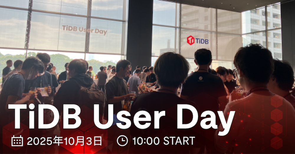 PingCAP株式会社 (本社:東京都千代田区、代表取締役社長:Eric Han、以下 PingCAP) は、国内最大級のNewSQLデータベース「TiDB User Day」を2025年10月3日に開催することをお知らせします。今回で4回目の開催となる本イベントでは、TiDBユーザーをはじめ、分散データベースやクラウドネイティブ技術に関心を持つエンジニアが一堂に会し、TiDBの最新情報、ベストプラクティス、実践的なユースケースを共有します。