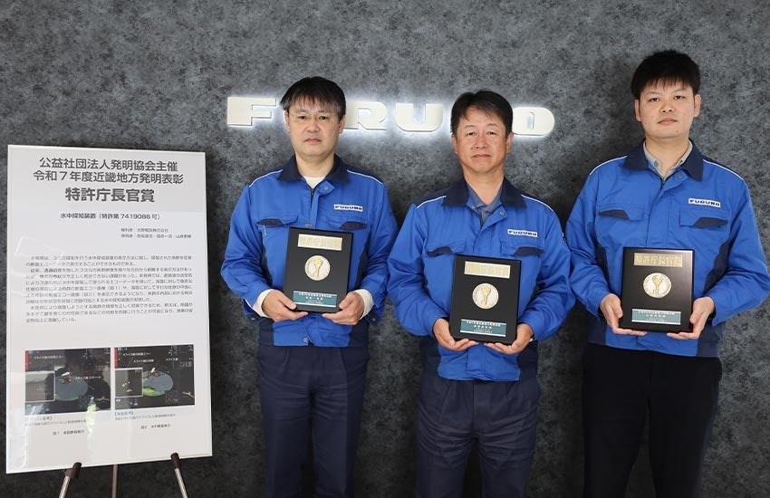古野電気株式会社(本社:兵庫県西宮市、代表取締役社長執行役員:古野幸男、以下、当社)は、2025年11月13日に公益社団法人発明協会が主催する令和7年度近畿地方発明表彰において、「水中探知装置」に関する技術で、特許庁長官賞および実施功績賞を受賞しました。