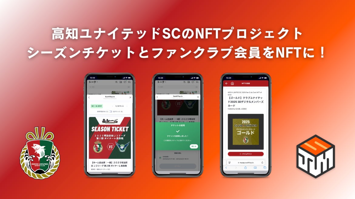 SUSHI TOP MARKETING株式会社(本社:東京都千代田区、代表取締役CEO:徳永大輔、以下「当社」)は、株式会社高知ユナイテッドスポーツクラブ(本社:高知県高知市、代表取締役:山本 志穂美、以下「高知ユナイテッドSC」)が販売する「2025シーズンチケット」および「クラブユナイテッド2025」において、当社の先進的なNFT技術を活用したサービスを提供することとなりました。
