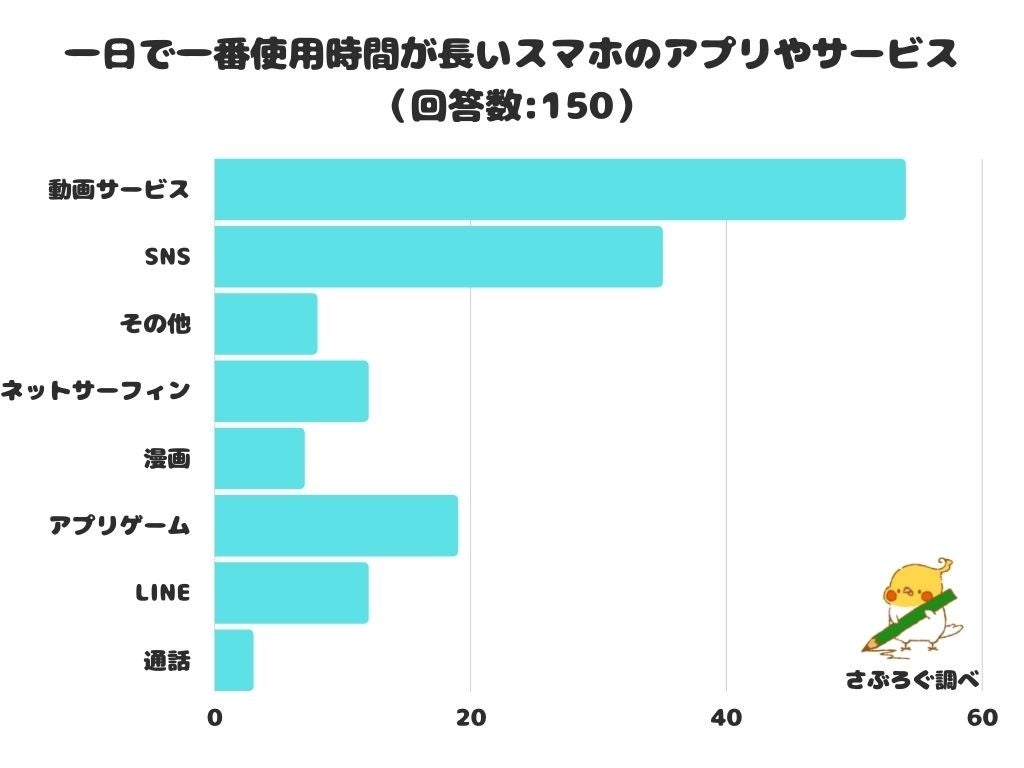 録画し忘れてもスマホで見逃し配信を見ることができたり、大人だけでなく子供も楽しめる「動画サービス」は1日の使用時間が長いと感じる方が多いようです。