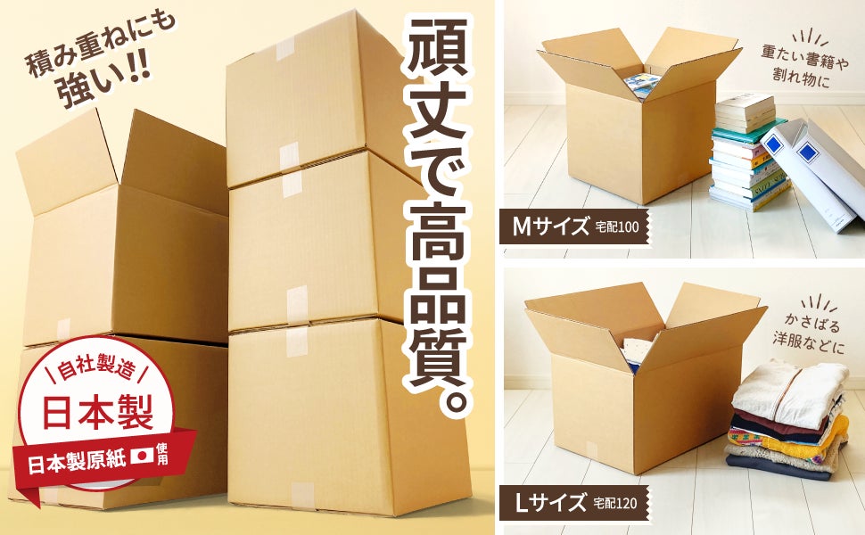 国産のダンボールを使用し、国内の自社工場で製作してお届けしております。