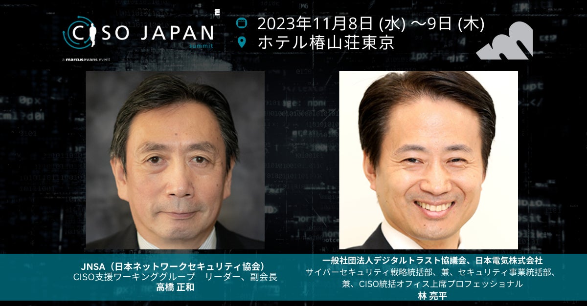 高橋氏には、企業の情報を守るためのCISOの役割について、林氏には、トラスト基盤がなぜ必要でどう使われるかについてお話しいただきます。