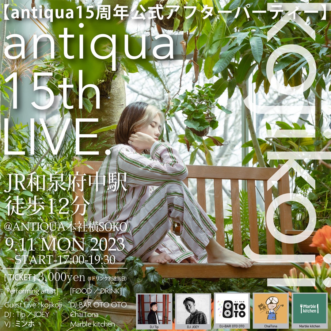 antiqua15周年アフターパーティにて開催決定!!【 kojikoji × ANTIQUA 】特別ライブ