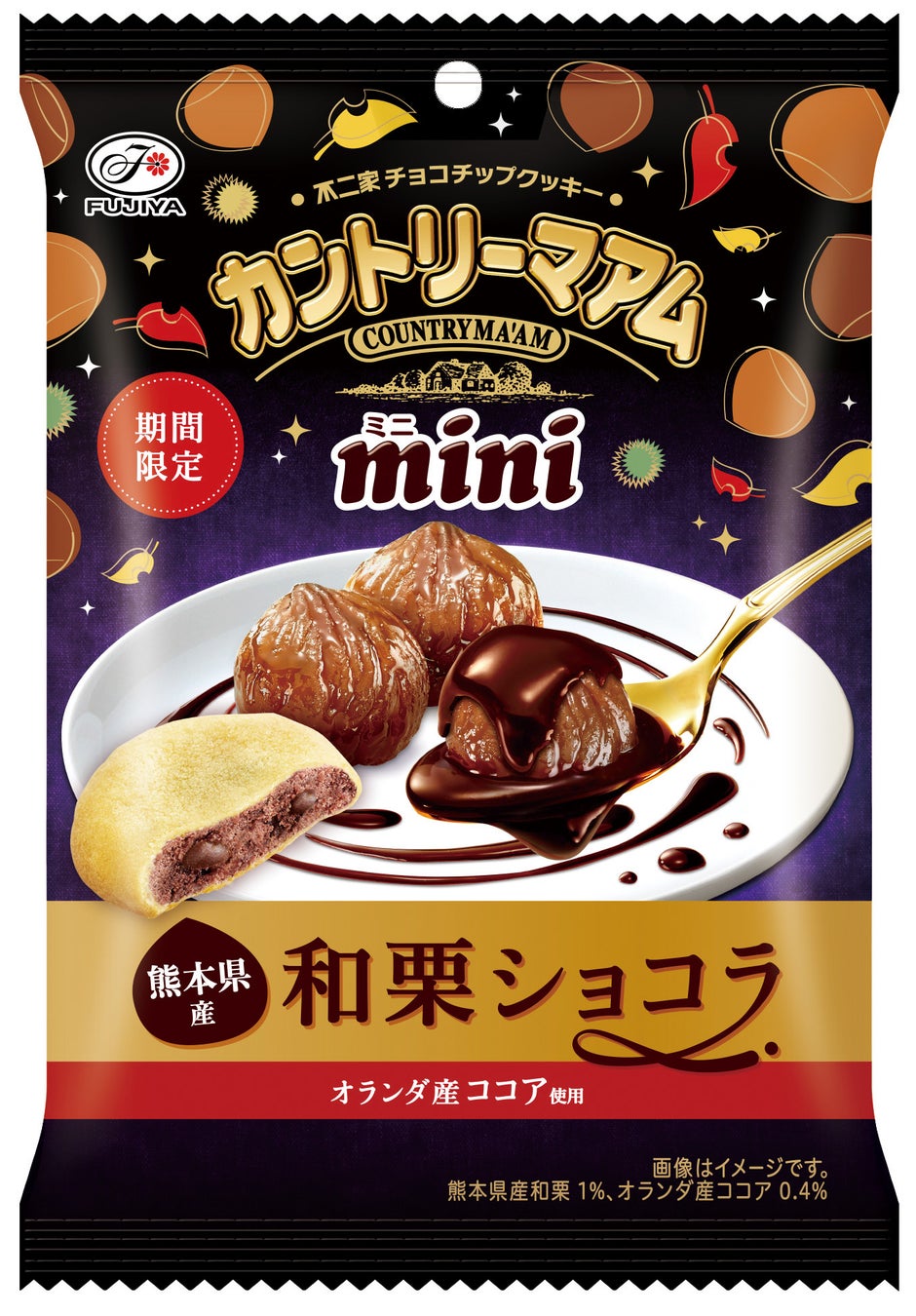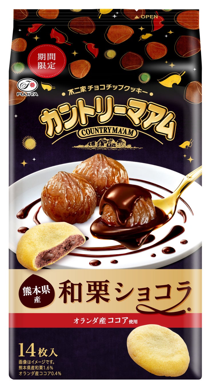 ・甘みが強く香り高い熊本県産和栗と、深い味わいのオランダ産ココア、チョコチップを練り込み焼き上げたカントリーマアム