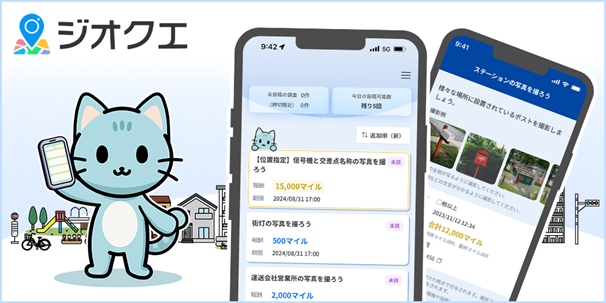 「GeoQuest」は、おでかけついでに写真を撮って投稿することでマイルを獲得することができるポイ活アプリです。ジオテクノロジーズは、「GeoQuest」の時間に縛られずにポイ活できるという特徴を活かし、本サービスが子育てで時間の融通が難しく、また苦しい経済状況に置かれるシングルマザーの方々の経済的自立支援の一助となることを目指します。