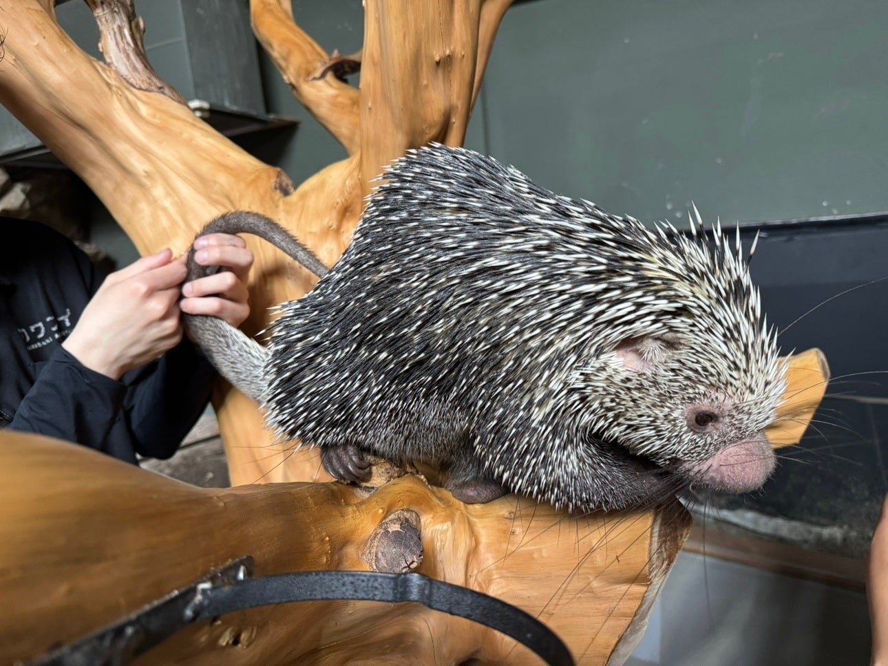 普段はエサやり体験ができないオマキヤマアラシにもエサをあげられます。