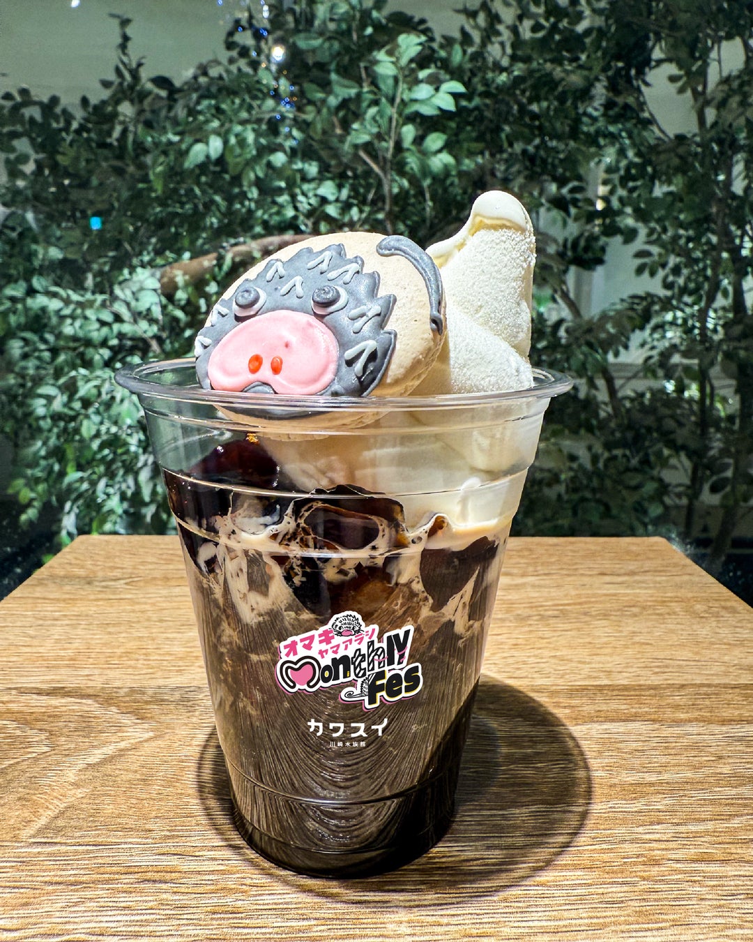 オマキヤマアラシがプリントされた特別なマカロンが乗っています。