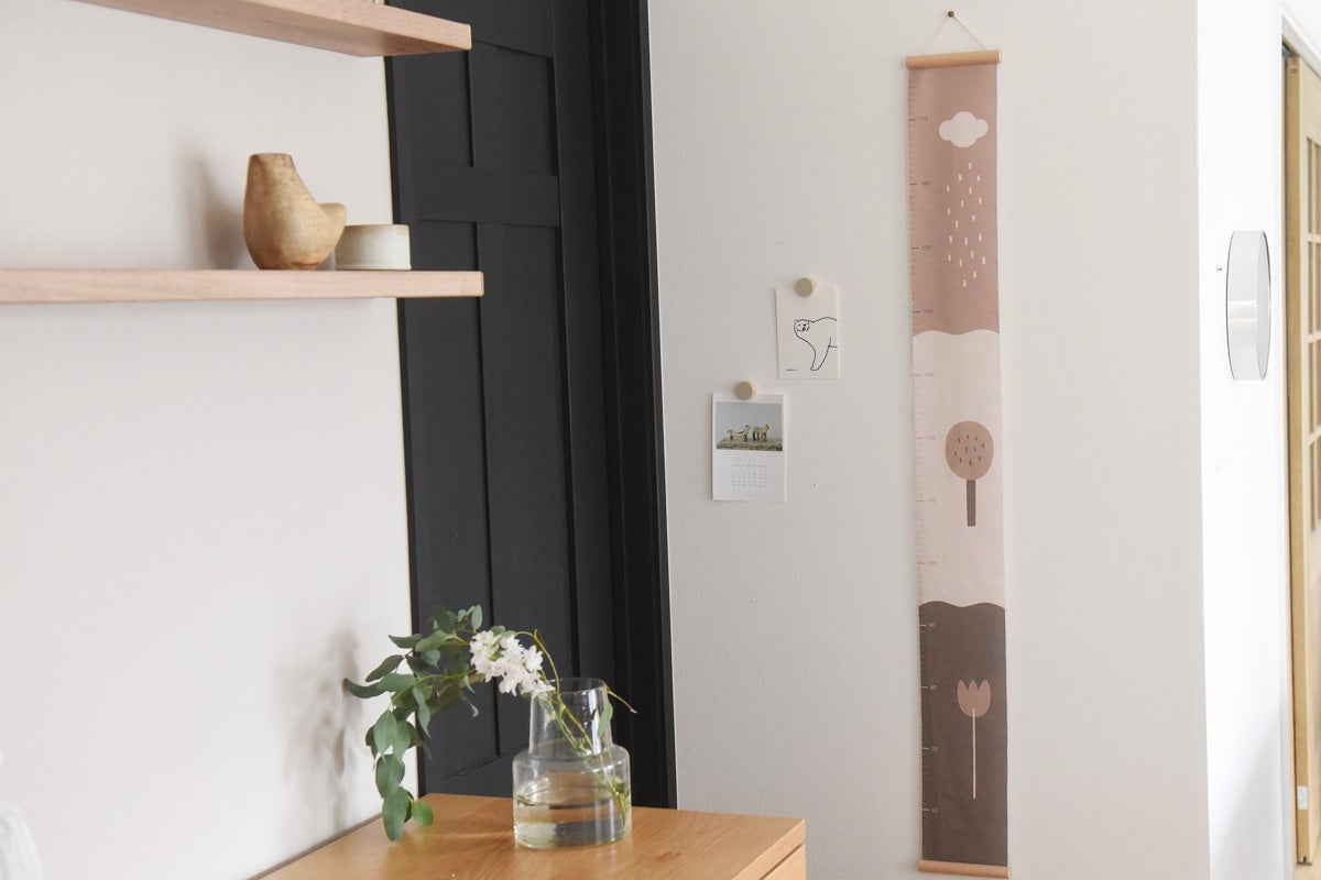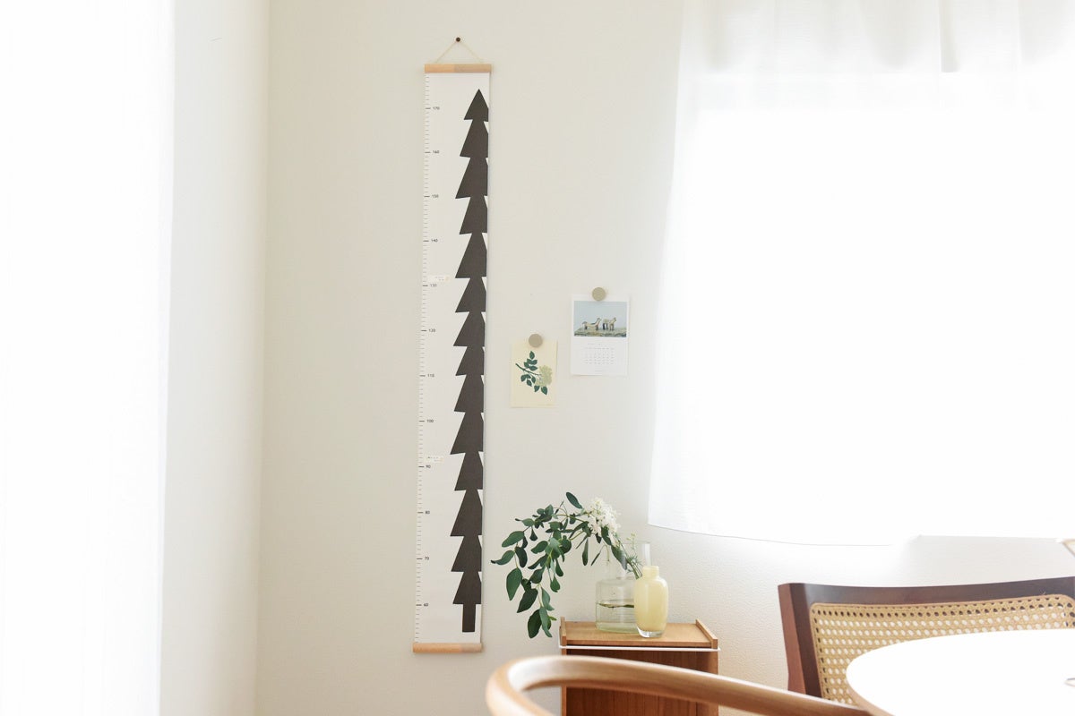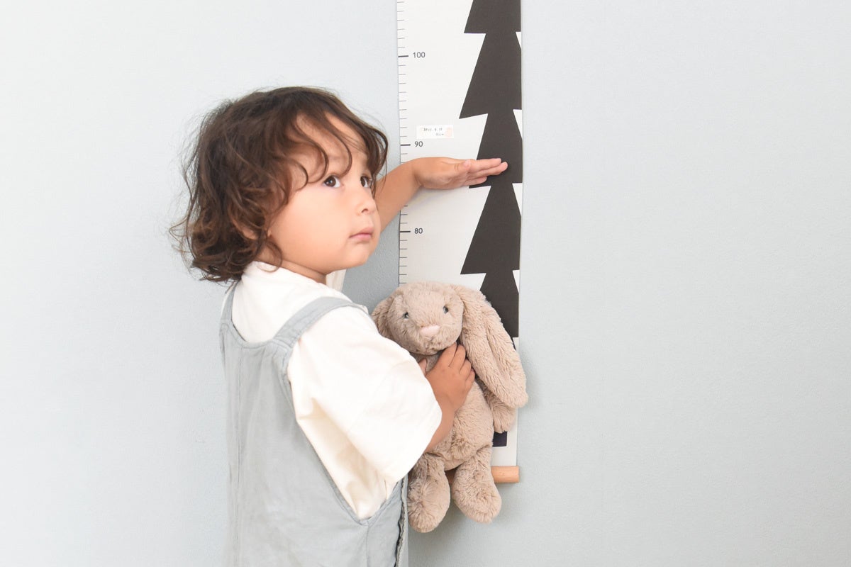 ベビーキッズブランド「kukka ja puu(クッカヤプー)」の身長計タペストリーは、壁を傷つけたり汚すことなく、子どもの成長記録をつけられるアイテムです。