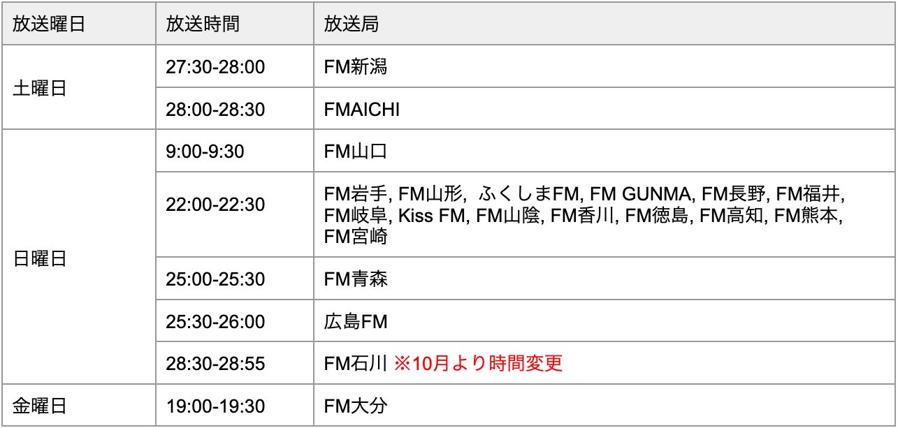 【番組ネット局/OA時間】放送局の追加や時間変更などは番組サイトにて随時更新