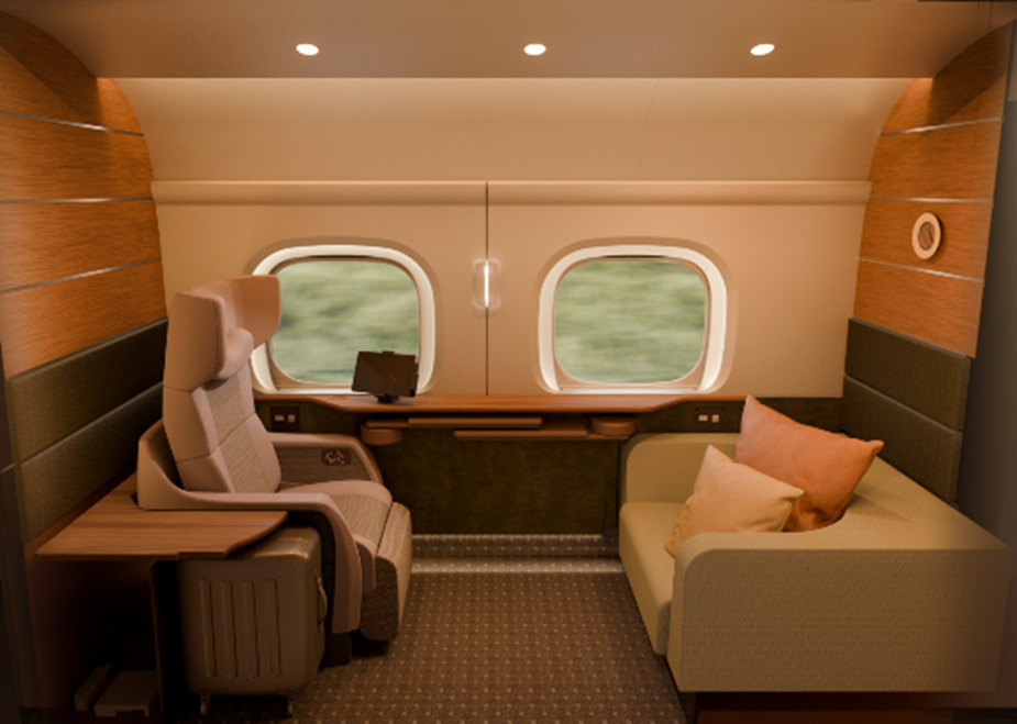東海道新幹線 N700Sにおいて2026年10月よりサービス開始される上級クラス座席(個室タイプ)および2027年度中に導入される上級クラス座席(半個室タイプ)のヘッドレスト部分に、NTTの特許技術「PSZ(パーソナライズドサウンドゾーン)」を実装したスピーカーを搭載いたします。お客さまのデバイスとワイヤレス接続をすることで、音楽や動画などの音声が自分の耳元のみに広がり、周囲への音漏れを気にせず快適にお楽しみいただけます。オンライン等での打合せを気兼ねなく行いたいビジネスパーソンをはじめ、プライバシーを重視されるお客さま、周囲を気にせずゆっくりと寛ぎたいお客さまなど、様々な利用層・利用シーンを想定しています。
