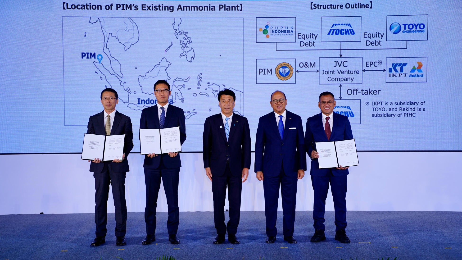 Toyo Engineering Corporation (TOYO, President and CEO Eiji Hosoi) has signed a Joint Development Agreement (JDA) with Pupuk Indonesia Holding Company (President Director Rahmad Pribadi,"PIHC"), a state-owned fertilizer company in the Republic of Indonesia, and ITOCHU Corporation (President and COO Keita Ishii,"ITOCHU"). The agreement focuses on producing green ammonia by installing an electrolyzer at the existing ammonia plant owned by Pupuk Iskandar Muda ("PIM"), a subsidiary of PIHC, and supplying green hydrogen derived from renewable energy sources. The signing of this JDA was announced at the 2nd Ministerial Meeting of the Asian Zero Emission Community (AZEC) held in Jakarta on August 21, 2024.
