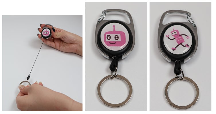 パスケースや鍵に取り付けるだけで、リールが伸びてサッと取り出せる便利グッズ。