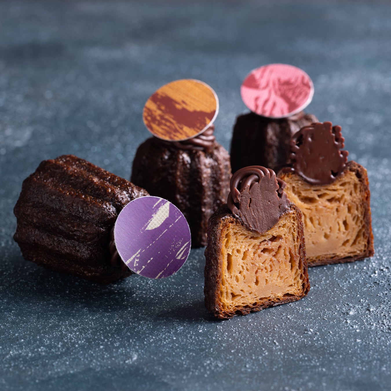 希少種ホワイトカカオを使用したフォンダンショコラとガナッシュショコラを絞ったカヌレのセット。