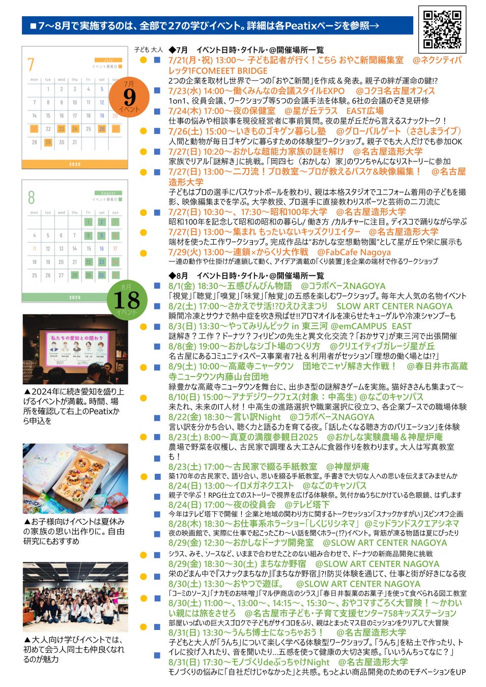 株式会社油勘、株式会社アクロネット、株式会社バッファロー、CASHIME、株式会社シアン、株式会社コラボスタイル、大冷工業株式会社、 Danchitects、株式会社de la hataraku、株式会社FabCafe Nagoya、豊通ファイティングイーグルス株式会社、東山遊園株式会社、医療法人愛知会家田病院、株式会社アイジーコンサルティング、株式会社ignArt、春日井製菓株式会社、健美薬湯株式会社、株式会社木村鋳造所、コクヨマーケティング株式会社、コーミ株式会社、クリスピー・クリーム・ドーナツ・ジャパン株式会社、lanitech合同会社、合同会社ライラ・カンパニー、マドラス株式会社、勝川エリア・アセット・マネジメント株式会社、認定NPO法人子育て支援のNPOまめっこ、マル伊商店株式会社、松田医薬品株式会社、名古屋眼鏡株式会社、中日本興業株式会社/ミッドランドスクエア シネマ、株式会社mirasuma、三菱地所株式会社、なごのキャンパス、名古屋造形大学、ナカモ株式会社、大阪シーリング印刷株式会社、株式会社QQ English、株式会社サーラグループ、三栄商事、シンニチ工業株式会社、株式会社スマック、株式会社タマディック、株式会社サンテフレスコ、株式会社ユニソン、独立行政法人都市再生機構、株式会社ウィルビジョン