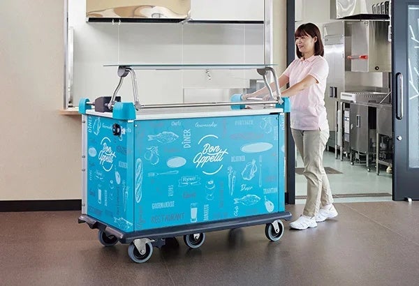 現場の声を反映した機能性と、対面型サービスによるホスピタリティの向上を両立する当製品群は、クックチル・ニュークックチルに対応した設計となっており、人手不足が深刻化する福祉施設の給食現場において業務効率化を力強くサポートします。さらに、完調品(完全調理済み食品)と組み合わせることで、調理から配膳までの工程をより省力化できるため、スタッフの負担軽減にも貢献します。
