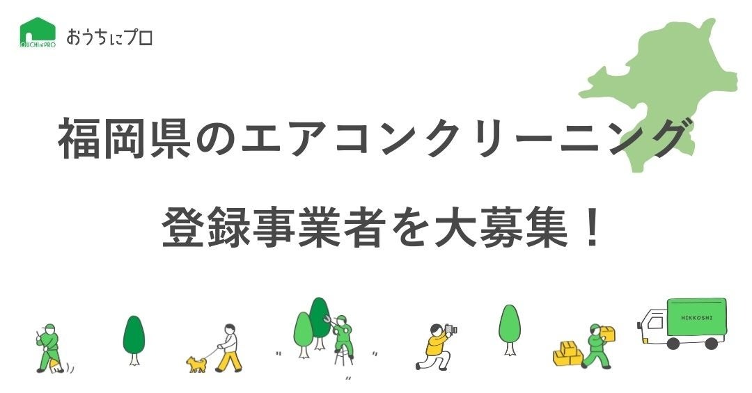 エアコンクリーニング・ハウスクリーニングの予約サイト「おうちにプロ」では、福岡県で施工可能なエアコンクリーニング業者を大募集しております。