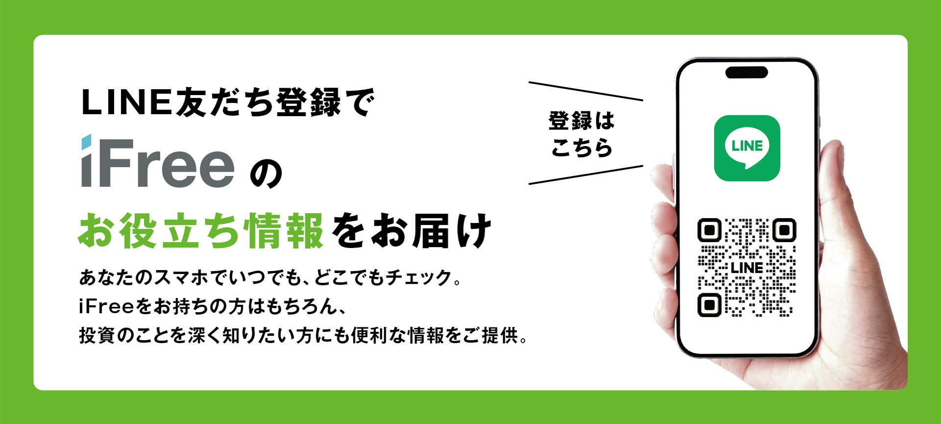 2025年5月30日にiFree(大和アセット)LINE公式アカウントを開設しました。友だち登録後、4つの簡単な質問にお答えいただくと、ご回答の内容に応じてあなたに合った資産運用に役立つ情報をお届けします。