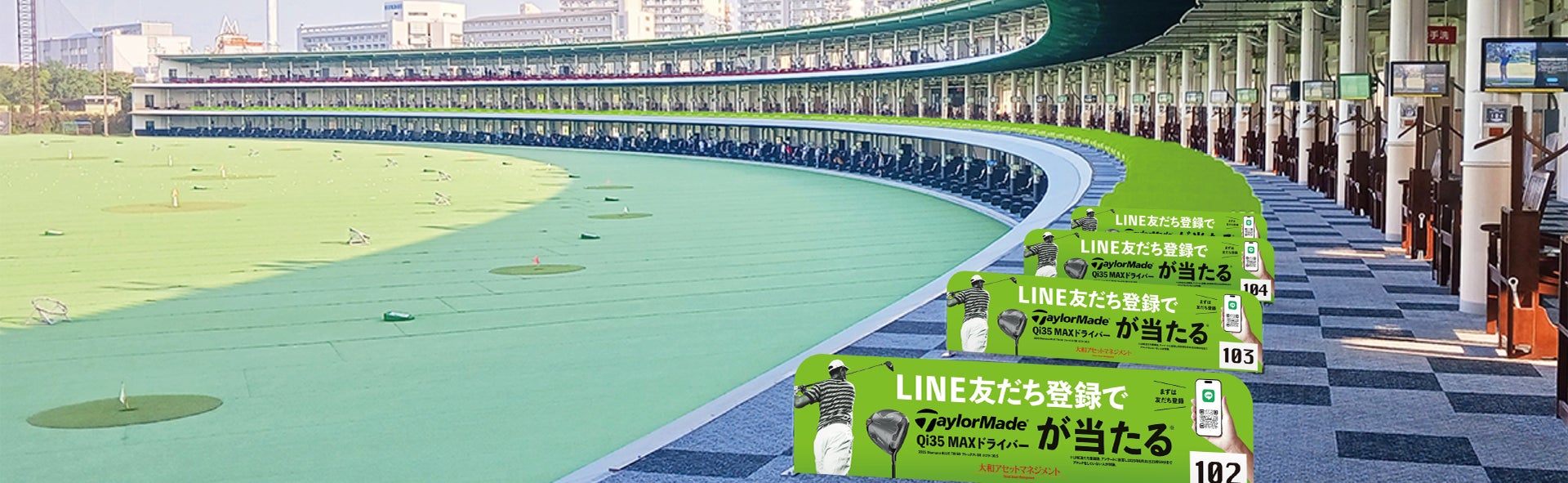 ロッテ葛西ゴルフ 2F打席スペースのiFree看板広告からも友だち登録可能
