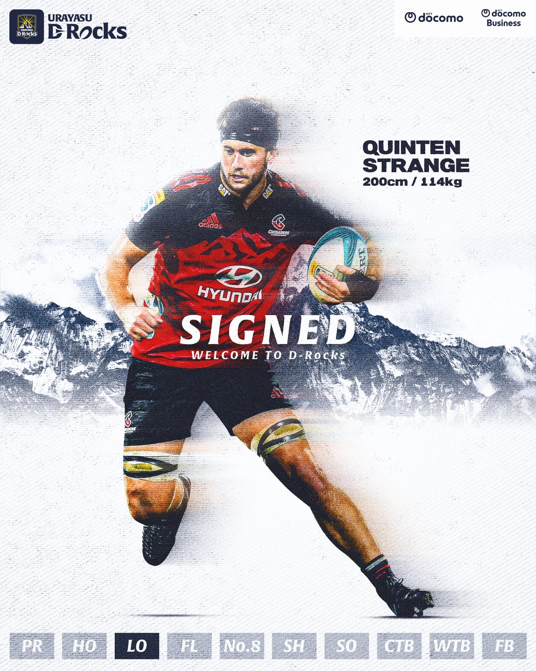 クインティン選手は、スーパーラグビーの強豪クルセイダーズにて9シーズンにわたり活躍し、複数のタイトル獲得に貢献してきた経験豊富なロックです。勝利を追求する文化の中で培われたその経験は、浦安D-Rocksにとって非常に貴重な財産となると確信しております。