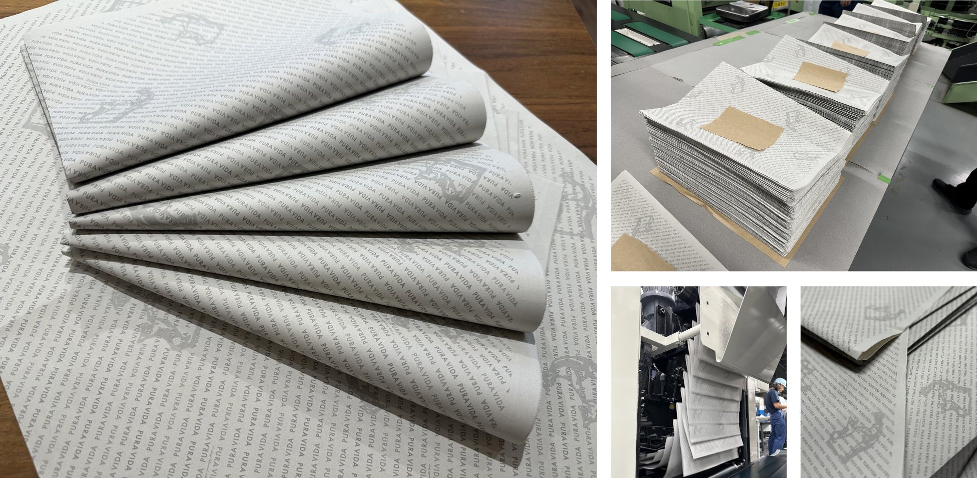 東日印刷株式会社(本社:東京都江東区、会長:武田芳明、以下TONICHI、https://tonichi-printing.co.jp/)とハヤシ・アンド・カンパニー株式会社(本社:神奈川県川崎市、社長:林みゆき、以下ハヤシ・アンド・カンパニー、https://884-and-company.jp/)が「SDGsパートナーシップ協働宣言」に基づいて開発したオリジナル新聞包装紙が、宮崎県の老舗雑貨店「PURA VIDA(プーラビーダ)https://www.pura-vida.jp/」(会社:株式会社 勉強堂、会長:與田 守孝、本社:宮崎市霧島)で採用され、7月11日にTONICHI本社工場で初めて印刷されました。この包装紙は、新聞印刷をする過程で生じた余剰紙を利活用して作ったもので、新聞印刷会社が企業様のデザインポリシーに沿った包装紙を開発・印刷したという点できわめて珍しい取り組みとなります。
