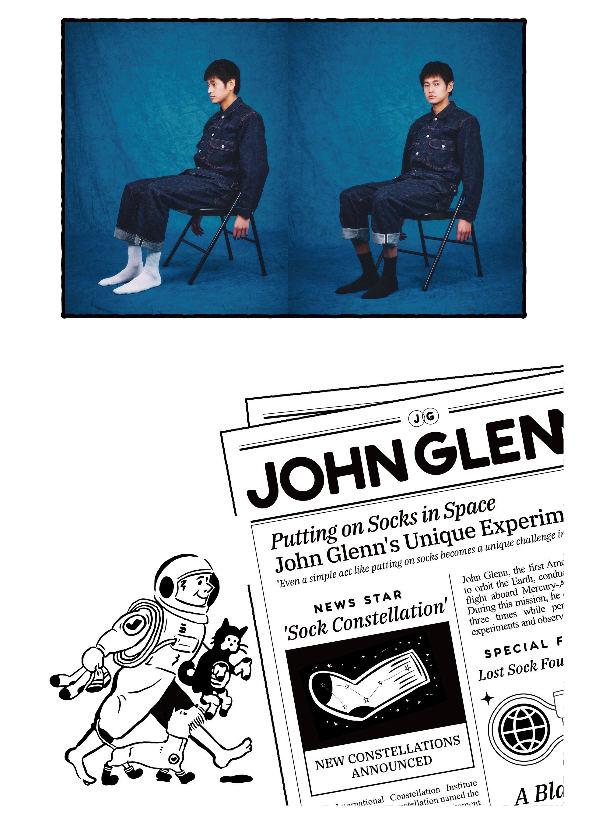 ブランド名の由来は、世界で初めて宇宙空間で靴下を履いた宇宙飛行士“John Glenn(ジョン・グレン)”。その大胆な挑戦と探究心を原点に、2025年4月に韓国・ソウルで生まれたのが、ミニマリズムを極めたソックスブランド「JOHN GLENN(ジョン・グレン)」です。“ブラックとホワイトのたった二色で、どこまで広がりを描けるか?”装飾を削ぎ落としたベーシックソックスというプロダクトに、意味と可能性を重ねます。