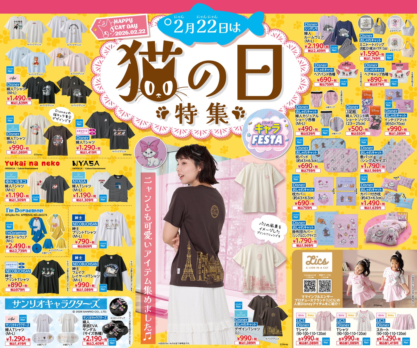 2月22日は猫の日。[Disney]の[おしゃれキャット]や[サンリオキャラクターズ]など、かわいい猫のアイテムを集めました。