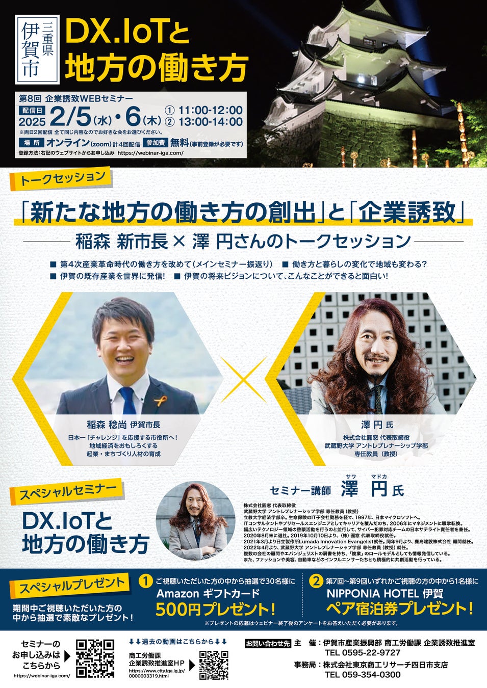 また、伊賀市長と澤さんによるトークセッションでは伊賀市の魅力などをお伝えする内容となっています。