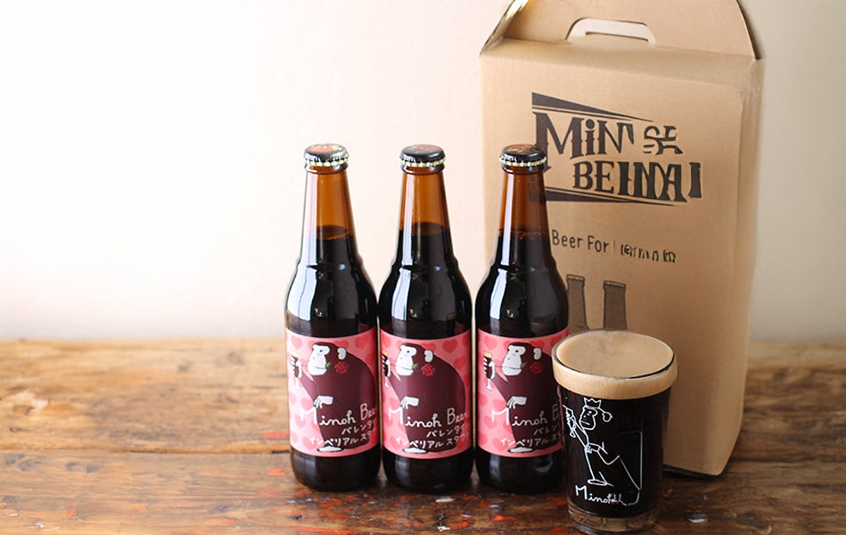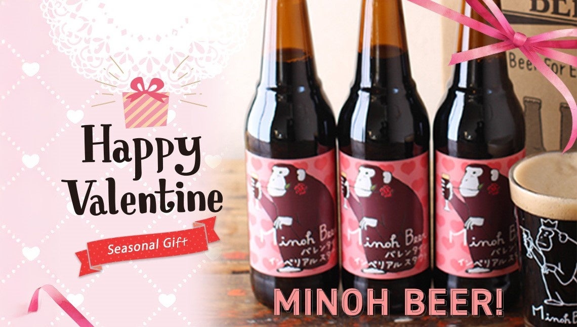 箕面ビールで人気の「おさるシリーズ」が、バレンタインバージョンのラベルデザインになって登場。
