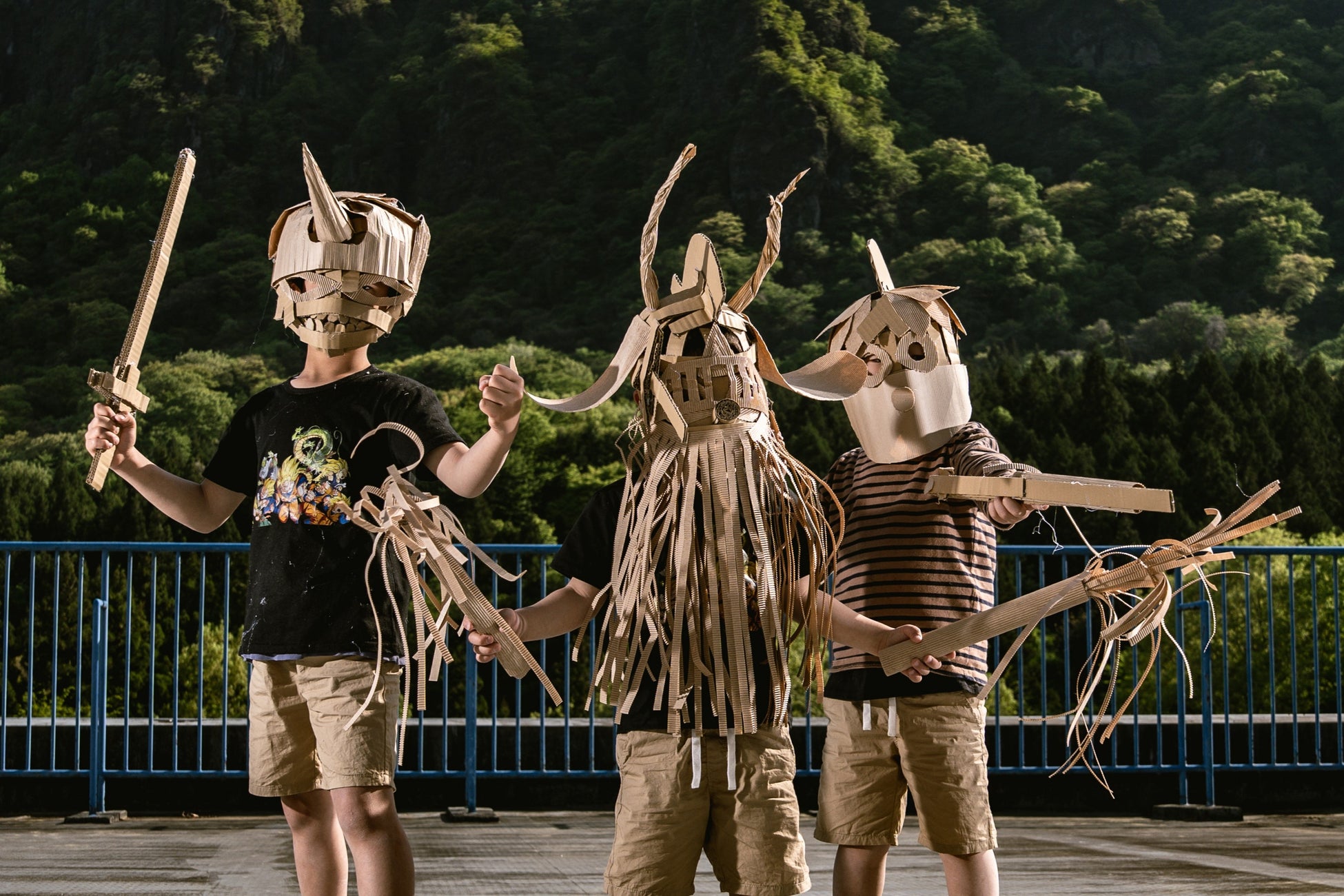 アイヌ民族にゆかりのある動植物をもとに、ダンボールで自分だけのかぶりものを作るワークショップ。