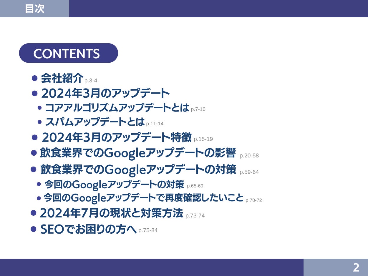 今回のGoogleアップデート分析レポートのトピックは下記の通りです。