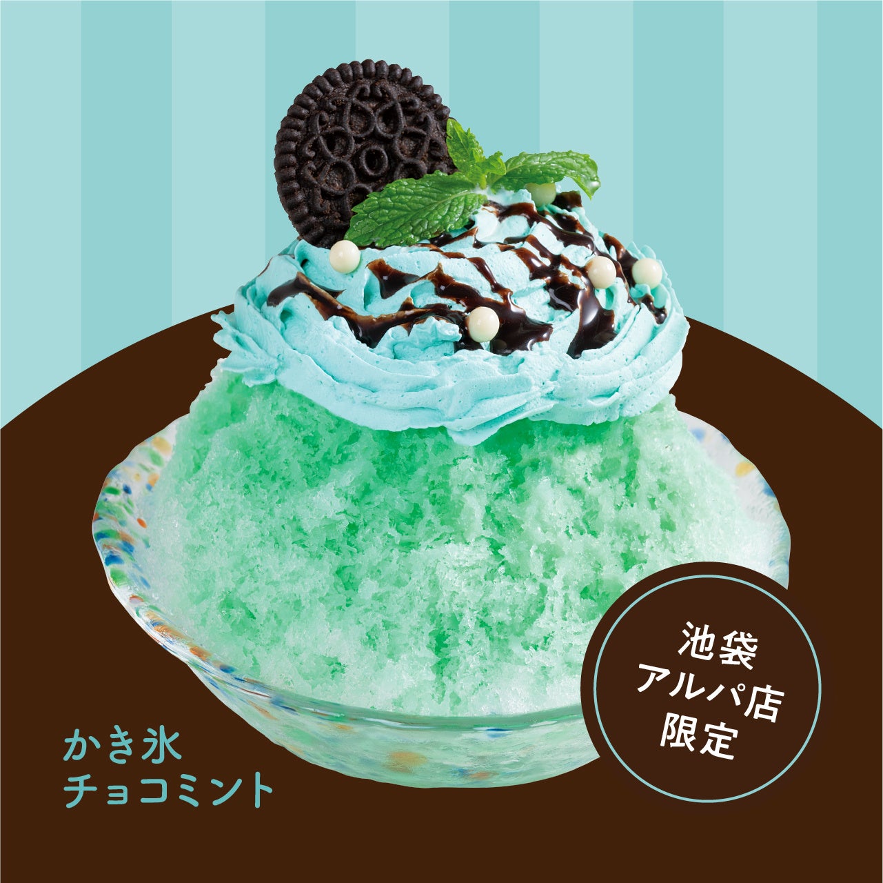 果肉感を楽しめる濃厚な甘酸っぱいソースがかかった定番の「いちご」、ごろっとした桃を添えたかき氷に特製ももシロップをたっぷりとかけて味わう「もも」。さらに、パステルカラーが映える「チョコミント」が池袋アルパ店限定で新登場!チョコミントの爽快感をお楽しみください。