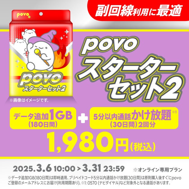 povo、副回線におすすめの「povoスターターセット」全3種を3月31日まで提供