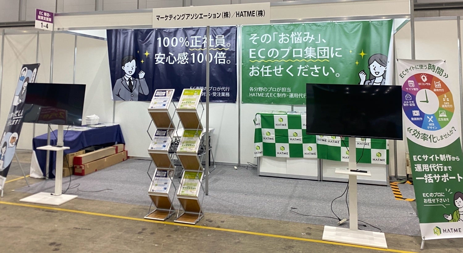 今回の展示会では、多くのご来場者様に弊社のEC運用代行サービスをご紹介でき、大変嬉しく思っております。特に、サイトの立ち上げからその後の運用や、バックオフィス業務を含めたサービスを探しておられる事業者様からのご相談を多数いただき、弊社のサービスが多くの企業様の課題解決に役立つことを再確認いたしました。これからもHATMEは、サイト制作から運用代行まで幅広くサポートしたサービスを提供し、皆様のビジネスの成功を全力でサポートしてまいります。