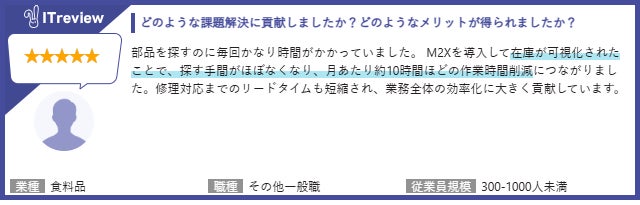 株式会社M2X(本社:東京都中央区、代表取締役:岡部晋太郎)が提供する現場にとけ込む設備保全クラウドシステム「M2X」が、IT製品レビュープラットフォーム「ITreview」において発表された