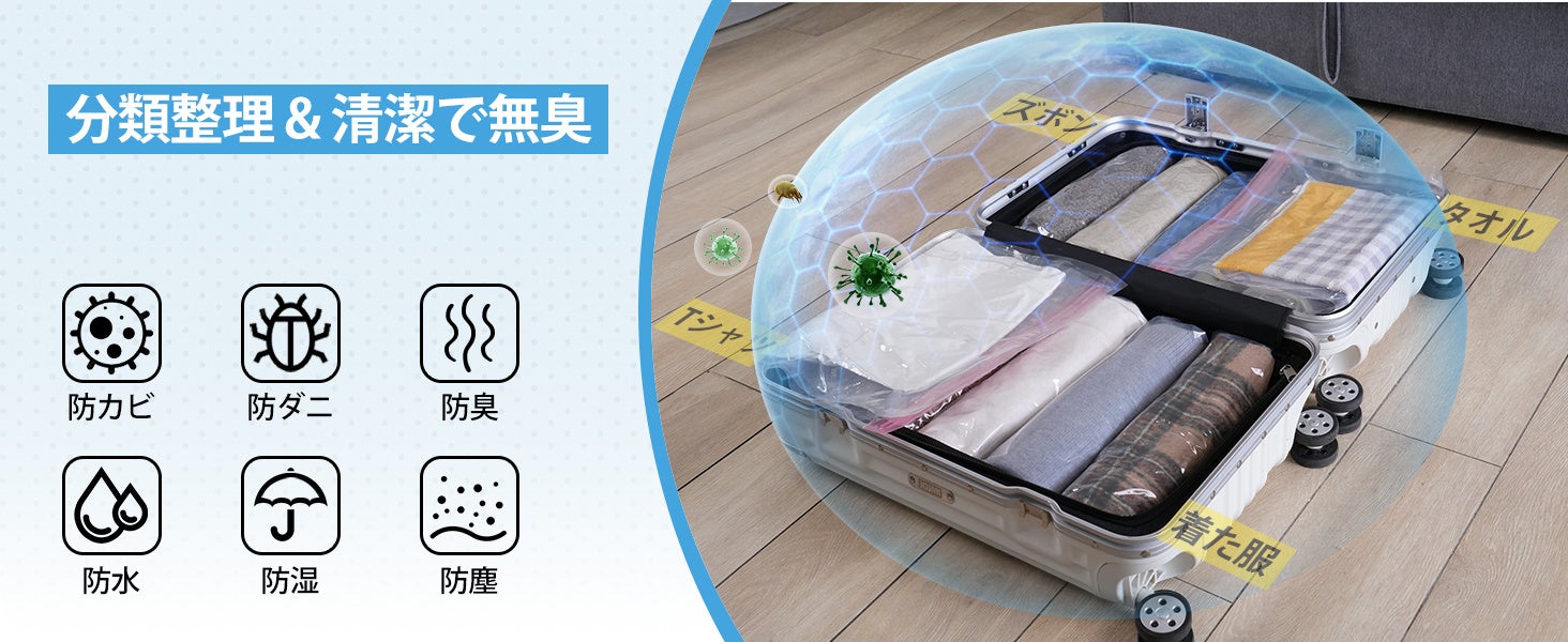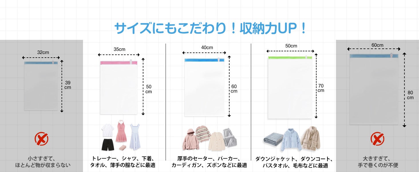 かさばる衣類を最大80%圧縮!収納スペースを有効活用
