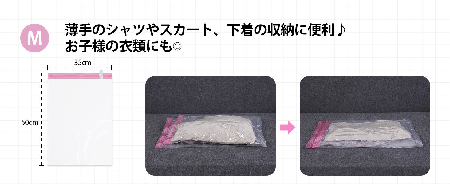 Lサイズ(40×60cm):トレーナーやズボンなどの中型衣類に最適。