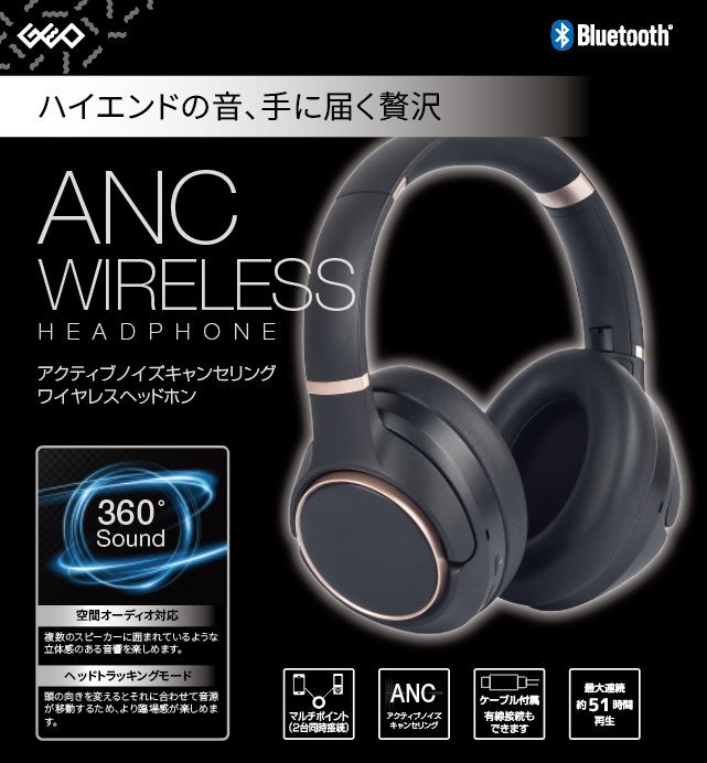圧倒的没入感を驚きの価格で。ANC×360°サウンド×51時間連続再生 ゲオ限定『ANCワイヤレスヘッドホン』を発売