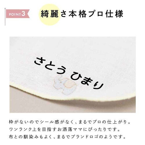 一般的なお名前シールとは異なり、枠がないため下地になじみやすく、自然な印象に仕上がります。