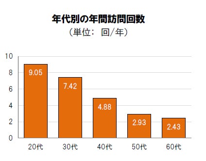 ちなみに、訪問経験のある人に限って年間訪問回数を算出すると19.1回となり、月に1回以上は訪問していることになるが、これは「ほとんど毎日」というヘビーユーザーが底上げしている結果だ。