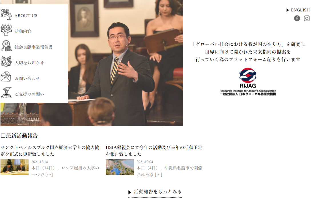 英語表記:Research Institute for Japan’s Globalization (略称:RIJAG)
