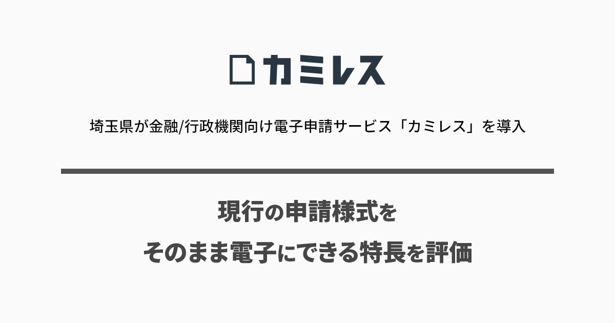 埼玉県が金融/行政機関向け電子申請サービス「カミレス」を導入