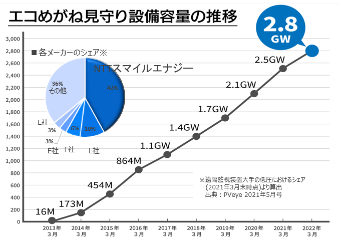 ※遠隔監視装置大手の低圧におけるシェア(2021年3月末時点)より算出 出典:PVeye 2021年5月号