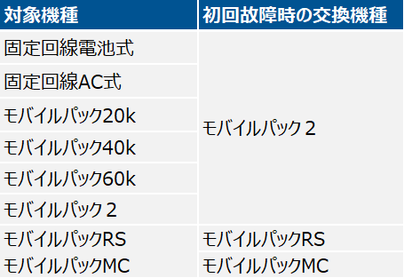・対象機器と故障交換時の機器 :
