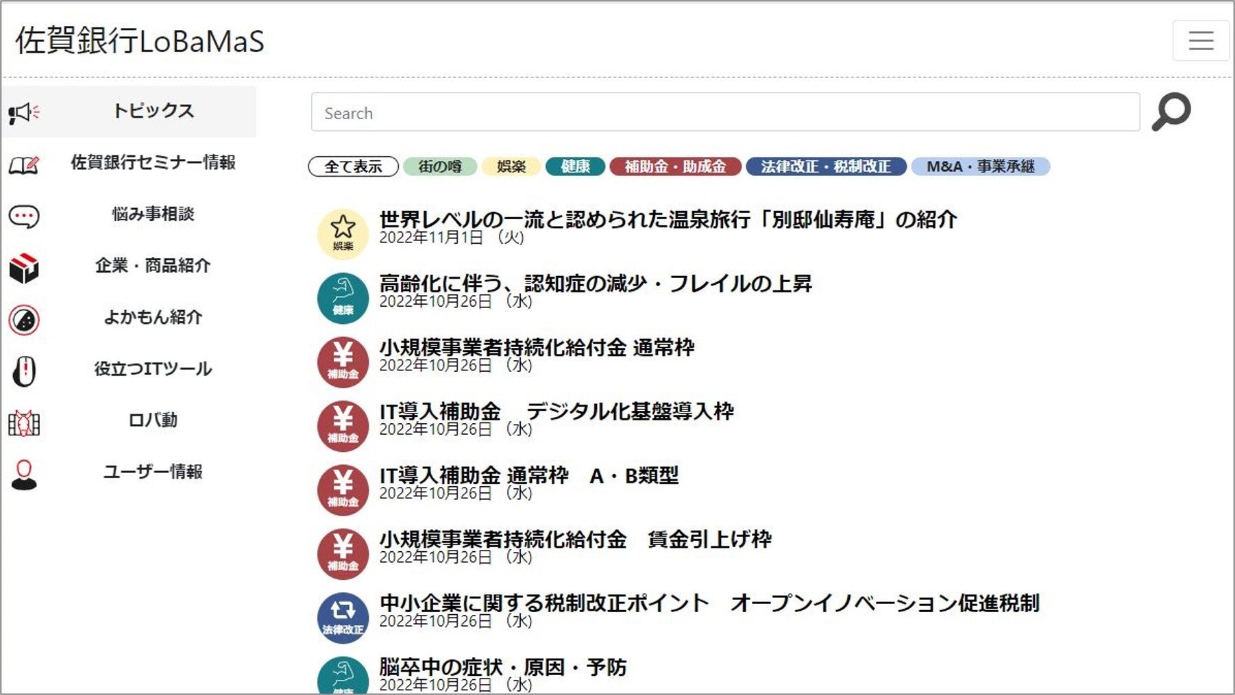 - 「佐賀銀行LoBaMaS」のコンテンツ
