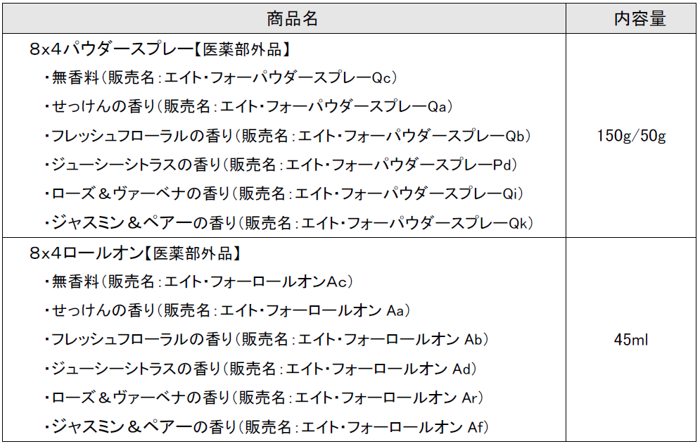 \☆8x4(エイト・フォー)発売50周年☆/『8x4パウダースプレー、ロールオン』新デザイン登場!