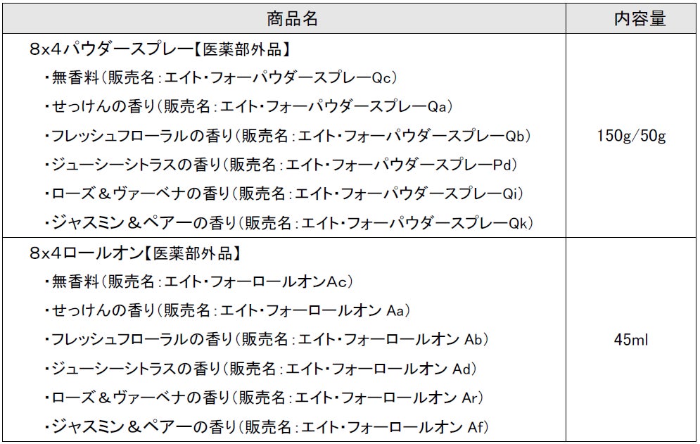 1974年の日本発売開始から50年に渡り、時代によって変化する汗やニオイに関するお悩みやご要望にお応えしてまいりました。これからも「8x4」は毎日をポジティブに過ごしたいお客様に寄り添い、快適に過ごすお手伝いができるように様々な商品をご提案してまいります。